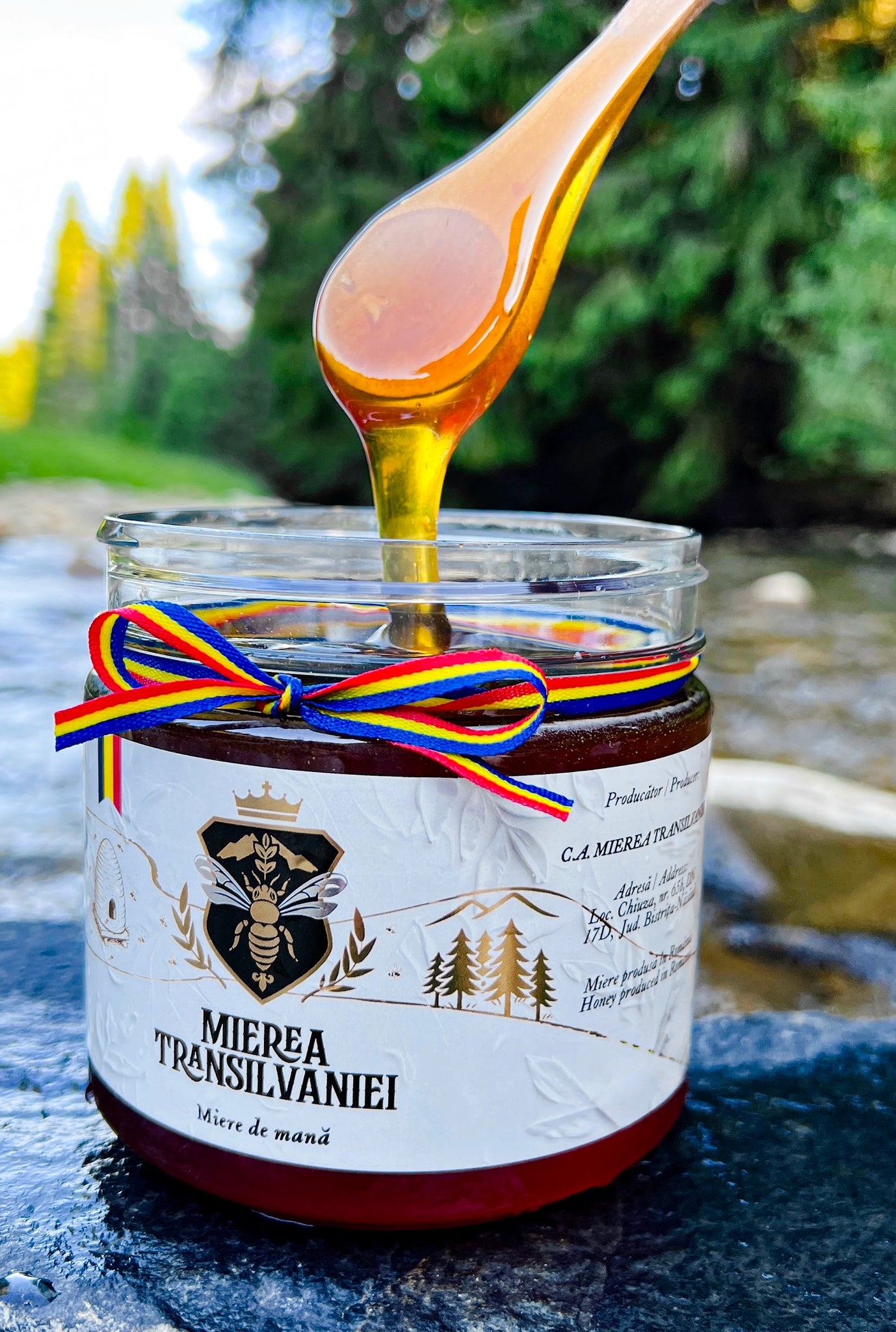 Rară și prețioasă, această miere de mană este recoltată doar în anumite condiții naturale, motiv pentru care nu se produce în fiecare an. Provine din pădurile adânci și neatinse ale Munților Carpați, la altitudini de peste 1.000 de metri, din unele dintre cele mai curate și nepoluate zone ale Transilvaniei, unde natura încă domnește în forma ei pură.