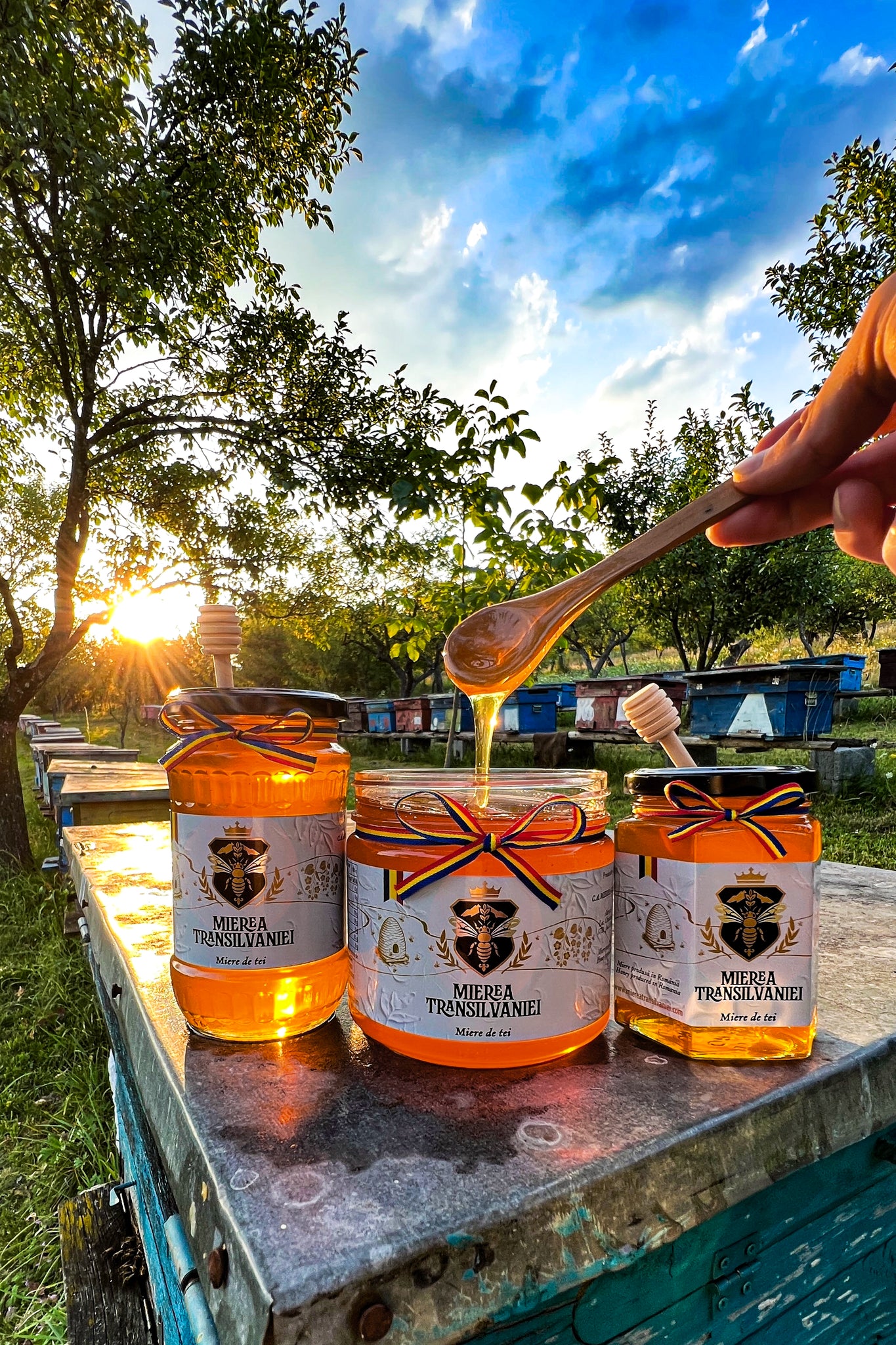 Din inima Transilvaniei, acolo unde pădurile de tei 🌳 răspândesc un parfum dulce în aerul curat al verii 🌞, ia naștere o miere deosebită – mierea de tei. Recoltată cu grijă din stupine aflate în aceste zone splendite 🌿, această miere păstrează intactă bogăția naturii.